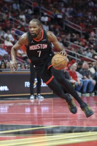 The Rockets will be shorthanded at forward with Durant out and Dorian Finney-Smith (offseason ankle surgery) and Tari Eason (oblique strain) recovering from injuries. Veterans Jae’Sean Tate and Jeff Green could receive more minutes in the short term, though Tate would need to be recalled from his G League assignment.