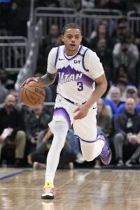 The 16th overall pick in the 2023 draft, George is having a breakout third season for Utah, averaging 23.6 points, 6.1 assists, 3.7 rebounds and 1.1 steals in 33.1 minutes per contest on .456/.371/.892 shooting through 54 games.