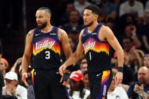 Houston’s star forward missed Game 1 due to a knee tendon bruise after suffering the injury in practice last week. Rockets coach Ime Udoka said during his pregame press conference that Durant, who tested out the knee during pregame warmups, wouldn’t be on a minutes restriction if he plays.